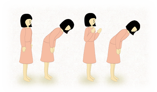 四、 | [一拝] 両手をおろし、最後にもう一度深いお辞儀(拝)をします。 |